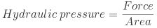 To calculate hydraulic pressure use the formula p = F/A, where F is the force, and A is the surface area.